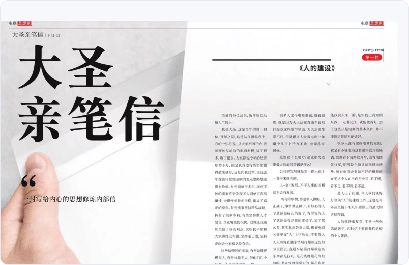 向大圣老师多多学习,你是我学习电商的启明老师/大圣老师讲的太多经典。一本84个电商思考偏向武功的一招一式,也就是术的练习。而写给电商企业的19封信就侧重于道的高瞻远瞩。道术兼具,加入这个圈子打开了视野,学懂了怎么做电商!!